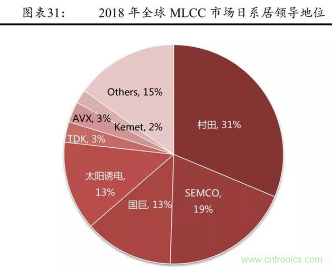 2018 年全球排名前六的企業分別為村田、三星電機、太陽誘電、 國巨、風華高科、TDK,前六大廠商占據近 80%市場。