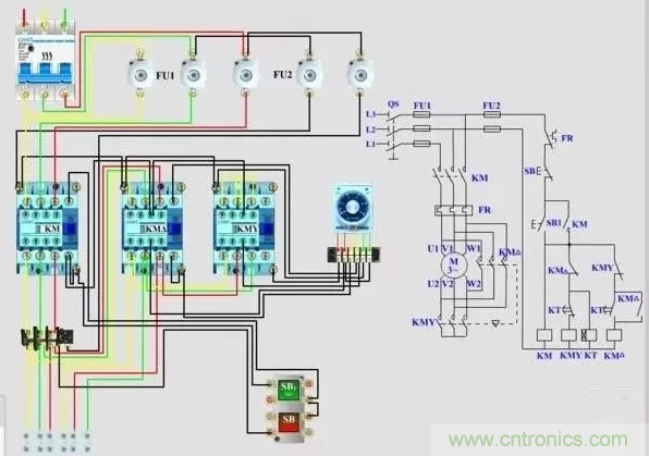 星三角啟動電路實物接線講解