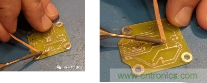 然后用一塊干凈的干布將電路板“擦亮”。在此過程中要稍微用點(diǎn)力,這樣焊料涂層會更有光澤。