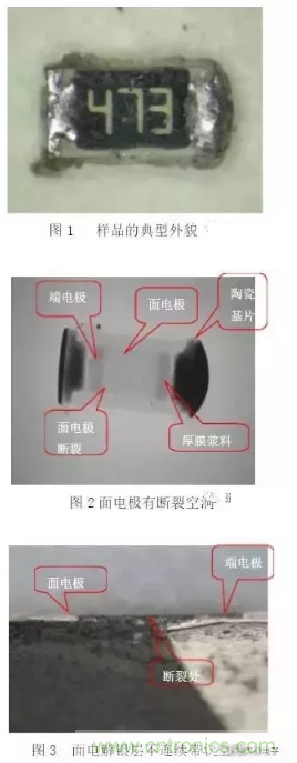 3) 引線斷裂:電阻體焊接工藝缺陷,焊點污染,引線機(jī)械應(yīng)力損傷。