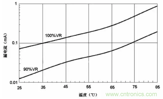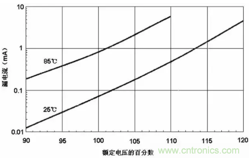 應(yīng)用電壓過高和溫度過高都會引起漏電流的增加。