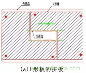 異形板的拼板,要注意子板與子板間的連接,盡量使每一步分離的連接處處在一條線上,見圖3.5所示。