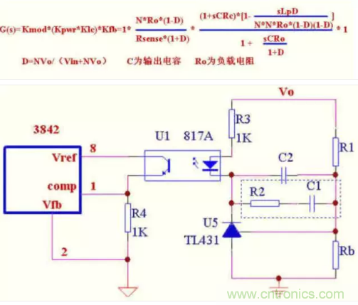 同樣假設光耦CTR=1,如果用CTR大的光耦,或加有其他放大時,如同時用IC的內部運放,只需要在波得圖上加一個直流增益后,再設計補償部分即可.這時要求把IC內部運放配置為比例放大器,如果再在內部運放加補償,就稍微麻煩一點,在圖上再加一條補償線結束.