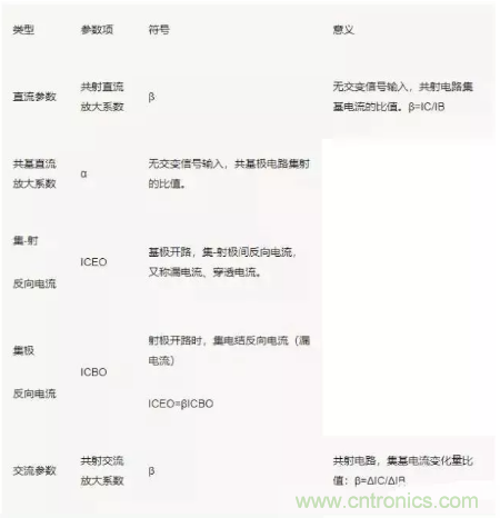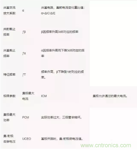 三極管性能參數較多,有直流、交流和極限參數之分: