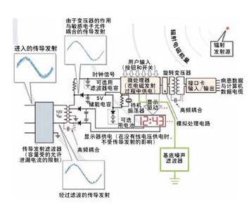 圖4所示為電子醫療設備中的微機地處使用基底噪聲濾波器。在此處使用基底噪聲濾波器能夠對微機產生的基底噪聲進行隔離,使其不會影響電路的其余部分,而反之亦然。這種設置有效的打破了電路中的高頻接地回路。
