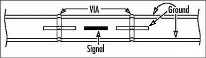 當信號線必須經(jīng)由過孔離開現(xiàn)在的一對布線層到其他布線層時,應就近在過孔旁放置接地過孔,這樣可以使回路信號順利返回恰當?shù)慕拥貙印兜?層和第7層分層組合,信號回路將從電源層或接地層(即第5層或第6層)返回,因為電源層和接地層之間的電容耦合良好,信號容易傳輸。