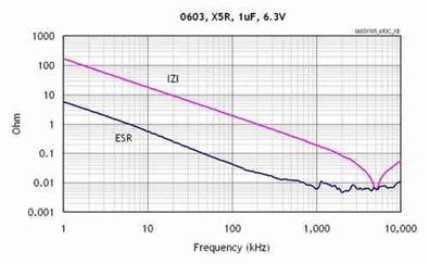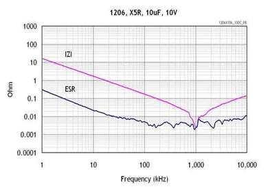 LDO需要增加外部輸入和輸出電容器。利用較低ESR的大電容器一般可以全面提高電源抑制比(PSRR)、噪聲以及瞬態(tài)性能。陶瓷電容器通常是首選,因?yàn)樗鼈儍r(jià)格低而且故障模式是斷路,相比之下鉭電容器比較昂貴且其故障模式是短路。輸出電容器的等效串聯(lián)電阻(ESR)會(huì)影響其穩(wěn)定性,陶瓷電容器具有較低的ESR,大概為10mΩ量級(jí)采用陶瓷電容時(shí),建議使用X5R和X7R電介質(zhì)材料,這是因?yàn)樗鼈兙哂休^好的溫度穩(wěn)定性。圖為X5R的ESR和頻率曲線(xiàn)。