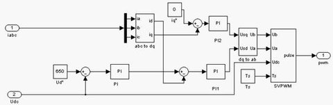 其中,空間電壓矢量控制通過合理地選擇、安排開關(guān)狀態(tài)的轉(zhuǎn)換順序和通斷持續(xù)時(shí)間,改變多個(gè)脈沖寬度調(diào)制電壓的波形寬度及其組合,達(dá)到較好的控制。相對SPWM控制,具有電壓利用率高、諧波含量小、大大改善了系統(tǒng)的靜態(tài)和動(dòng)態(tài)性能,具有結(jié)構(gòu)簡單、容易實(shí)現(xiàn)、控制精度高等特點(diǎn)。本文采用空間矢量控制的控制策略,并對整流電路采用電壓外環(huán)PI和電流內(nèi)環(huán)PI控制相結(jié)合的方法,建立三相電壓型PWM矢量控制方案的仿真模型,并對其進(jìn)行分析研究。