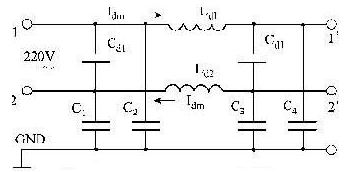 采用無源的EMI濾波器是抑制傳導干擾最有效的辦法。即在電路中插入一個帶通濾波器,讓50 Hz交流電暢通,其余頻率的信號受阻。但要嚴格控制濾波器LC元件的寄生參數,它們的制作工藝、安裝位置、走線方式,都會影響EMI濾波效果。加接圖1所示的濾波電路,可以控制通過傳導耦合進入電網的噪聲電平。