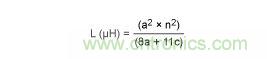 式中,a為線圈的平均半徑,單位為英寸;n為匝數;c為線圈磁芯的寬度(rOUTER - rINNER),單位為英寸。當線圈的c > 0.2a時11,該計算方法的精度在5%之內。