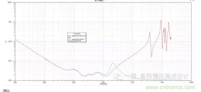 第四條,封裝電容和Die電容這里不做太多描述,只給出一個實際案例,圖5是某芯片,Die電容大小為2071NF。能看到Die電容起作用之后,30M以上的PDN阻抗基本完全被壓下來了。也就是說,30M以上的電源噪聲,進入芯片之后被Die電容濾除。系統設計時不需要考慮這個頻段以上的濾波。