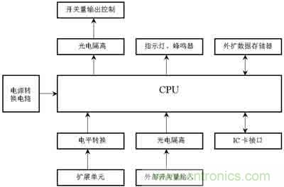 圖1為汽車行駛記錄儀硬件結構原理。信號的抗干擾處理是通過光電隔離來實現。車載設備的電源系統對設備的可靠運行影響很大,好的電源電路能夠過濾掉許多通過電源線傳入的干擾信號。
