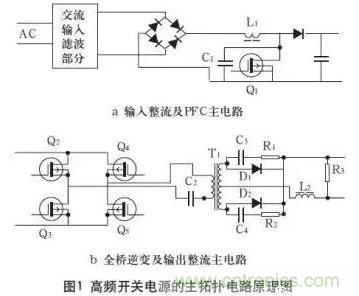 高頻開(kāi)關(guān)電源的主拓?fù)潆娐吩恚鐖D1所示。