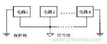 單點接地有兩種類型,一種是串聯單點接地,另一種是并聯單點接地。如圖8-3所示。