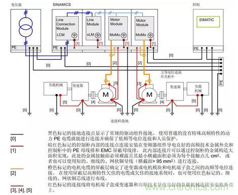 互相通信的設(shè)備也是一樣的,如果各自的零電位不一致,會導(dǎo)致信號幅值超差,不能正常通訊,具體表現(xiàn)為偶發(fā)通訊中斷和通訊端口損壞等故障,下圖為常見的電柜內(nèi)等電位接地示意圖。
