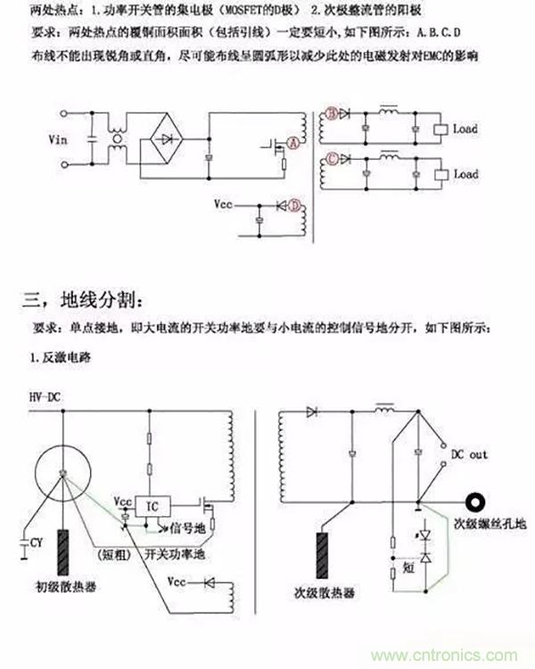 1.針對熱點,一定要特別注意(高頻開關(guān)點),是高頻輻射點,布局走線對EMC影響很大。