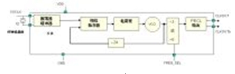 與晶體振蕩器相比,PLL合成器是一種更為復雜的系統時鐘源。其中,單從PLL來講,它通常由相頻檢測器(PFD)、電荷泵、低通濾波器 (LPF)和壓控振蕩器(VCO)等組成。而通用的PLL合成器時鐘產生器一般需要外部晶體以及放大反向器,并再通過完全集成的PLL和邏輯電路來完成。PLL合成器還可以實現其它更高的功能和特性,如晶體頻率倍頻、輸出相位校準、多個輸出副本和對輸出進行分頻等。圖3顯示 的是典型PLL合成器的結構示意圖。