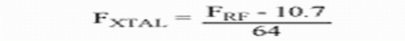 晶體頻率可以根據(jù)接收頻率指定。由于MAX1470使用低端注入的10.7MHz中頻,晶體頻率可由下式給出(單位為MHz):