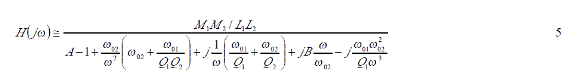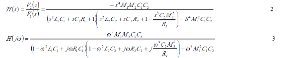 這里V1是發射信號的電壓, V2是接受信號的電壓,則測試回路的傳輸函數是由下式所決定的。