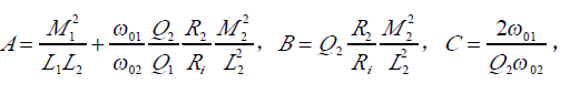 這里ω 01與ω 02(ω02》ω01)分別是由發射線圈 LC諧振回路與待測 LC諧振回路的諧振角頻率,實際應用時 Q2在100左右,而 Q1小于1。此時式3可簡化為: