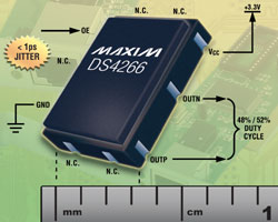 DS4266支持LVPECL和LVDS輸出。器件工作在-40°C至+85°C擴(kuò)展級(jí)溫度范圍,提供節(jié)省空間的5.0mm x 3.2mm x 1.49mm、10引腳LCCC表貼陶瓷封裝。芯片起價(jià)為$4.50 (10,000片起,美國(guó)離岸價(jià))。可提供樣品以加速設(shè)計(jì)進(jìn)程。
