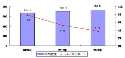 圖2 2009-2011年中國便攜式電子學習產品市場銷售量及其發展速度預測