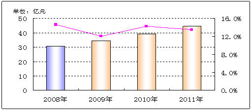 • 預(yù)計(jì)2009-2011年我國(guó)通信測(cè)試市場(chǎng)將保持13%左右的增長(zhǎng)率,2011年市場(chǎng)規(guī)模有望突破45億元