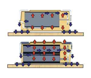 相比橫向結(jié)構(gòu),縱向設(shè)計(jì)在縮減高度上受限制更大,目前的電容器高度一般在3.5~4.5mm。今天,這一因素更顯重要,甚至在有如電信基礎(chǔ)設(shè)施、軍事等應(yīng)用中,電子產(chǎn)品的小型化也正成為一個(gè)考驗(yàn),這在過(guò)去是不曾有的。