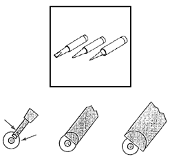 選擇正確的烙鐵頭尺寸和形狀是非常重要的,選擇合適的烙鐵頭能使工作更有效率及增加烙鐵頭之耐用程度。選擇錯誤的烙鐵頭會影響焊鐵不能發揮最高效率,焊接質量也會因此而減低。(圖9)