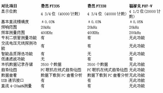 以Faith費(fèi)思的工業(yè)用真有效值萬用表FT330系列和美國福祿克的工業(yè)用萬用表F87-V一比較就可以看出國產(chǎn)品牌的優(yōu)勢(shì):