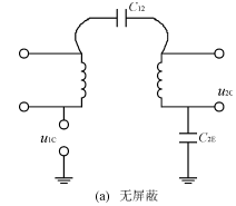 在圖1(a)中,隔離變壓器不加屏蔽層,C12是一次繞組和二次繞組之間的分布電容,在共模電壓u1C的作用下,二次繞組所耦合的共模噪聲電壓為u2C,C2E是二次側的對地電容,則從圖可知二次側的共模噪聲電壓u2C為: