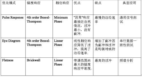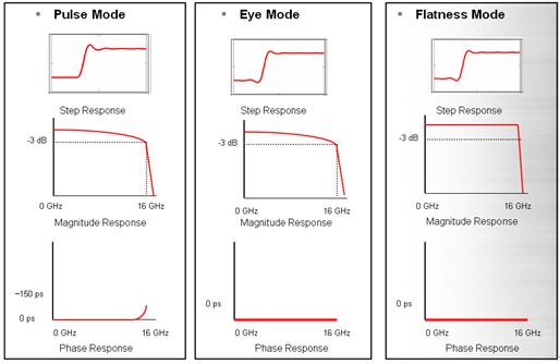 當今的高帶寬數字示波器都會采取某種脈沖響應優化方式去降低幅頻響應或相頻響應對被測信號的負面效應,業界應用最廣泛的脈沖響應方式有三種,分別為Pulse Mode、Eye Mode和Flatness Mode。