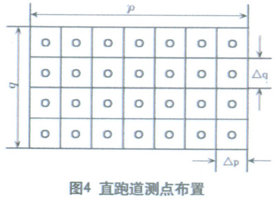 1) 四點法:把同一側兩燈柱間的測量路段分成若干個大小相等的矩形網格,把測點設置在每個矩形網格的四角,圖7為四點法布點時的測點布置圖。