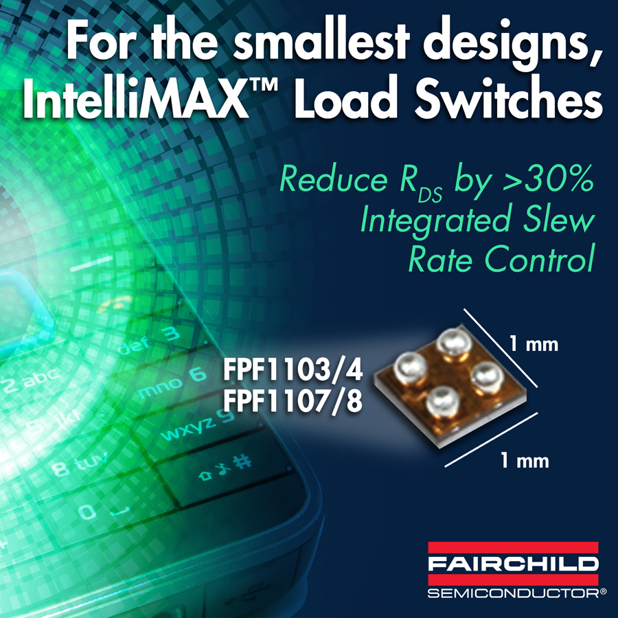 隨著終端應用設備的體積日趨減小,飛兆半導體繼續因應這一發展趨勢,利用先進的集成能力,提供以超小外形尺寸包羅高功能性之解決方案,其中包括最新推出的FPF110x先進斜率負載開關系列。 FPF110x是IntelliMAX™ 產品系列旗下最新的產品,相比目前使用的傳統解決方案,這些器件能夠延長終端應用設備的電池壽命,并減少占用空間。