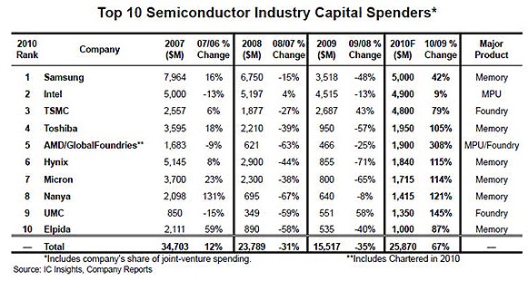 Samsung很可能成為2010年支出額最大的公司。“盡管Samsung發(fā)布了保守的資本支出計(jì)劃,在存儲(chǔ)芯片產(chǎn)能上投資47億美元,但該公司今年資本支出仍可能超過60億美元。