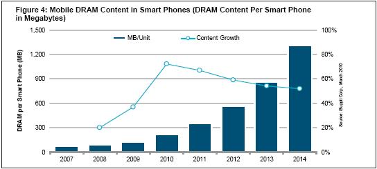 - 未來幾年智能手機使用的DRAM平均數(shù)量將增長九倍以上