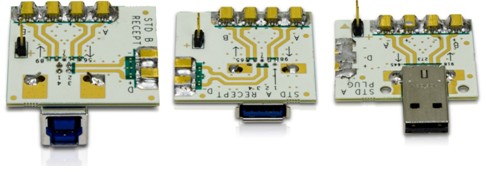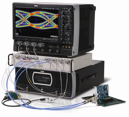 力科于2009年4月發布了USB3.0的物理層測試解決方案,包括了針對HOST/DEVICE的發送端(TX)測試和接收端(RX)測試、以及USB3.0電纜的TDR測試。對于USB3.0的TX測試,為了測量到5次諧波,需要帶寬12.5GHz以上的示波器,力科的SDA813Zi帶寬13GHz,采樣率40GSamples/s(最高可達80GS/s),配合USB3.0一致性測試軟件QualiPHY、眼圖醫生軟件和測試夾具(見圖2),可以快速完成USB3.0的發送端Compliance測試和調試分析。對于USB3.0的RX測試,力科的PeRT3是具備協議通信能力的誤碼率測試儀,可以完成USB3. 0的誤碼和抖動容限測試。在USB3.0規范中要求同時測量TX和RX。