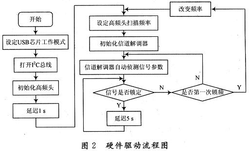 硬件驅動程序是系統設計中很關鍵的一個部分,它直接關系到各硬件芯片是否能正常穩定的工作。硬件的驅動是由主控芯片來完成,在本方案中將uSB傳輸控制芯片CY7C68013作為主控芯片,它內置增強型的8051內核,通過I2C總線來控制前端的高頻頭和信道解調芯片,完成對前端的驅動。