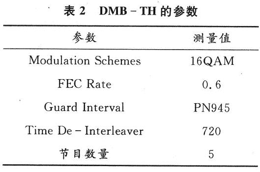 在完成了USB數字電視接收棒的系統總體方案設計之后,根據所選用的芯片,參照相應技術手冊,設計了電路原理圖并制作了印刷電路板。在硬件制作期間,同時進行軟件的開發工作。在硬件制作完成后,利用KEILC和VC6++進行了調試。利用筆記本電腦在室內和運動狀態下分別進行了長時間(12h)測試,USB端口接收數據的速度穩定在1.8MB/s。測得廈門地區國標DMB-TH數字電視的參數見表2。