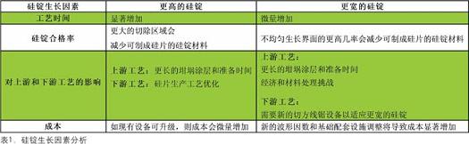 最后,如果硅錠生長(zhǎng)和線切割操作之間的生產(chǎn)線平衡無(wú)法維持,總體硅片生產(chǎn)力也會(huì)下降。生產(chǎn)更多可制成硅片的硅錠材料可能會(huì)增加生產(chǎn)能力和爐子的利用率,但如果線切割操作無(wú)法處理增加后的材料或波形因數(shù),就可能會(huì)出現(xiàn)在制品(WIP)瓶頸或降低線鋸利用率,從而導(dǎo)致硅片生產(chǎn)運(yùn)營(yíng)的總體生產(chǎn)力下降。影響硅錠生長(zhǎng)的因素分析見(jiàn)表1。