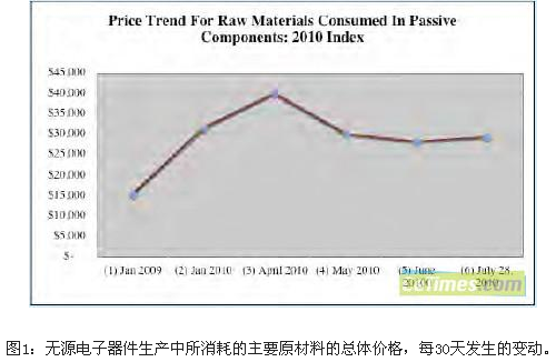 在7月份,無源電子器件在生產(chǎn)過程中所消耗原材料的帕曼指數(shù)(Paumanok index)增長了4%。這標志著,在2010年4月急劇上漲之后的原材料價格整體下降的局面已經(jīng)臨近結(jié)束(圖1)。