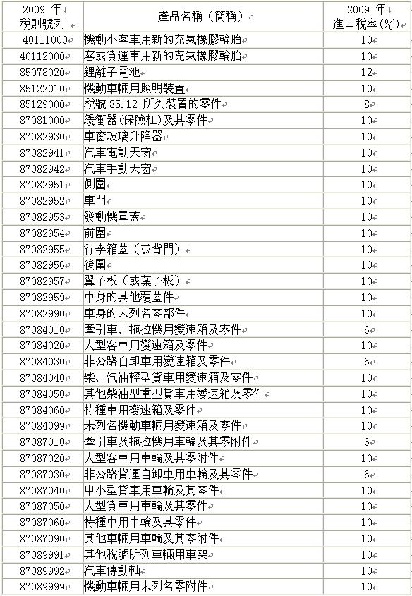 - 兩岸經(jīng)濟(jì)合作架構(gòu)協(xié)議於6月29日第五次「江陳會」正式簽署完成,汽車零組件納入早期收獲清單,主要為輪胎、車身零件、傳動件,另包括鋰離子電池等。