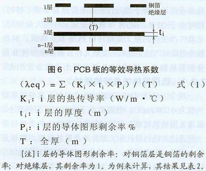評價PCB的散熱能力,就需要對由導(dǎo)熱系數(shù)不同的各種材料構(gòu)成的復(fù)合材料一一PCB用絕緣基板的等效導(dǎo)熱系數(shù)(九eq)進行計算。PCB板的等效導(dǎo)熱系數(shù)見圖6所示。