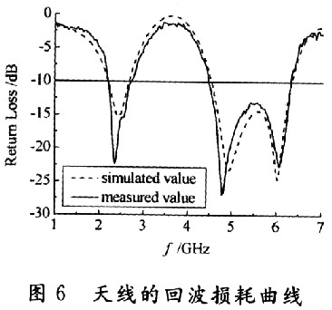 在綜合考慮阻抗帶寬和輻射特性的基礎上,得到了以下的最優化天線幾何參數,其中L=29mm,L1=6mm,L2=6mm,L3=6.5mm,W1=3mm,W2=1mm,W3=2.5mm,S1=S2=S3=1mm,LB=11mm,WB=9mm,WG=26mm,HB=3mm,LG=7mm,LMS=10mm。天線實物如圖5所示。[page]