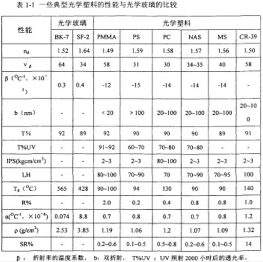 與傳統無機光學材料相比,盡管光學高分子材料的耐熱性、耐候性、耐磨性、耐溶劑性、抗吸濕性及光學均一性(雙折射、光學畸變)較差,折射率、色散范圍較窄,熱膨脹系數較大,但是聚合物光學材料具有密度小、耐沖擊、成本低、加工成型容易等優點,近年來得到了廣泛的應用。常用光學高分子材料有烯丙基二甘醇二碳酸酯等幾種熱固性樹脂和聚甲基丙烯酸甲酯、聚苯乙烯、聚碳酸酯、聚4-甲基戊烯-1、苯乙烯-丙烯腈共聚物等熱塑性光學樹脂。表1-1列出了一些常用光學高分子材料的特性。[page]