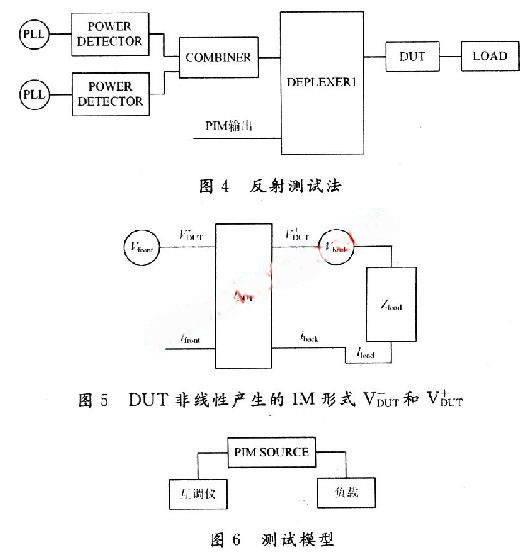 該系統(tǒng)中兩個(gè)大功率載頻f1和f2通過(guò)雙工濾波器發(fā)射到DUT,終端接50 Ω負(fù)載。PIM產(chǎn)生的雜散信號(hào)在DUT中產(chǎn)生,并在兩個(gè)方向傳播——“前向”到匹配負(fù)載,“反向”到雙工濾波器。發(fā)射激勵(lì)信號(hào)的頻率和被測(cè)的IM產(chǎn)物的頻 率由雙工濾波器的TX和RX通道決定。接收機(jī)測(cè)量反向傳播的IM波功率。
