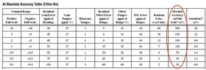 圖2NI628x數(shù)據(jù)采集板卡的絕對(duì)精度表