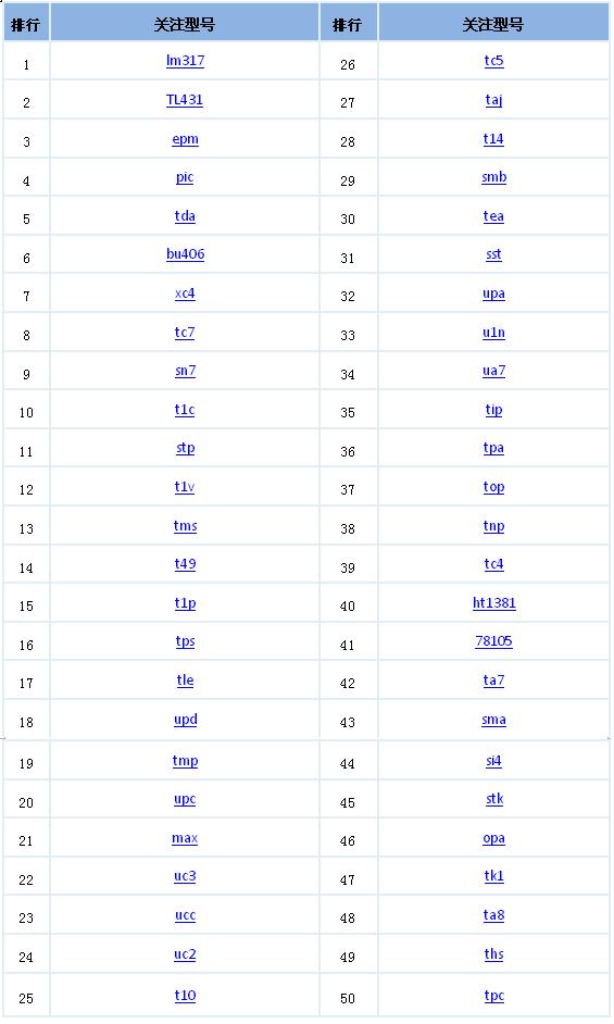 哪些IC型號(hào)最搶手,哪些獲得最多的詢價(jià),前50名讓你一目了然!