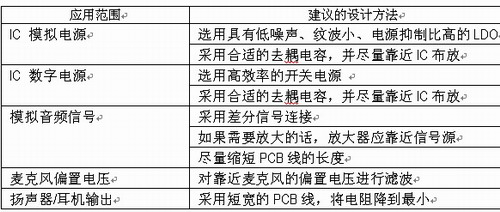 便攜式音頻系統中另一個損害信號質量的噪聲源是耦合進模擬輸入和輸出信號中的噪聲。噪聲耦合機制可以是感性或容性的,但優秀的系統設計和PCB版圖可以減小噪聲耦合。可以達到較好噪聲免疫的方法之一是在模擬音頻信號路徑中盡可能使用差分信號。用于差分信號的PCB走線應成對布線并確保匹配阻抗,這樣任何噪聲都會等量地耦合進差分信號路徑的兩側(即‘共模’信號)。差分電路具有的共模抑制特性可很好地抑制任何耦合進來的噪聲,從而有效減弱可聽到的噪聲音量。雖然在許多情況下不能使用差分信號,但這的確是非常有用的手段。
