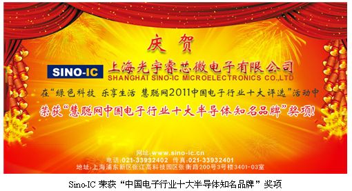 Sino-IC于2011中國電子行業十大評選活動獲頒半導體知名品牌獎